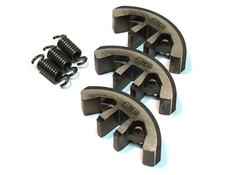 You will have 3 shoes and 3 springs, be sure to take the time now to clean thoroughly. Inspect the clutch springs. Replace any worn or broken springs. Worn springs can be difficult to distinguish. Look at the hook area to see if there is any wear. This is usually an indication of premature failure.